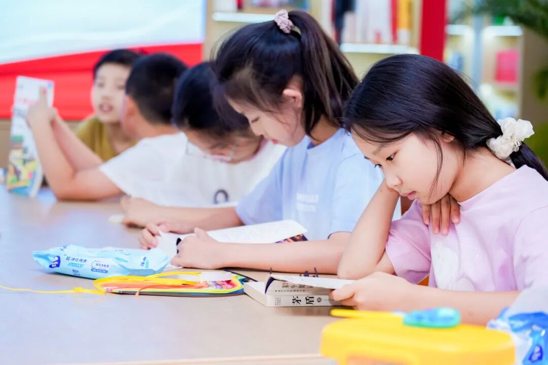 经开区的暑期托管班不但有“热血运动”风,还有“书香文化”风。尚亦城集团的托管班设置在乡情书斋里,书香四溢的阅读环境助力孩子们在快乐中阅读、在阅读中成长。值得一提的是,尚亦城集团的托管班由集团内部员工亲自上阵,参与托管服务工作。来自集团党委组织部、党委宣传部、行政事务部、财务管理部、产业发展部、融媒体中心、科技会展公司、元宇宙公司等多个部门的员工积极发挥特长和专业优势,开设了创意美术、口才表演、视唱练耳、英语口语等各种生动有趣的课程,让孩子们在寓教于乐中有所收获。